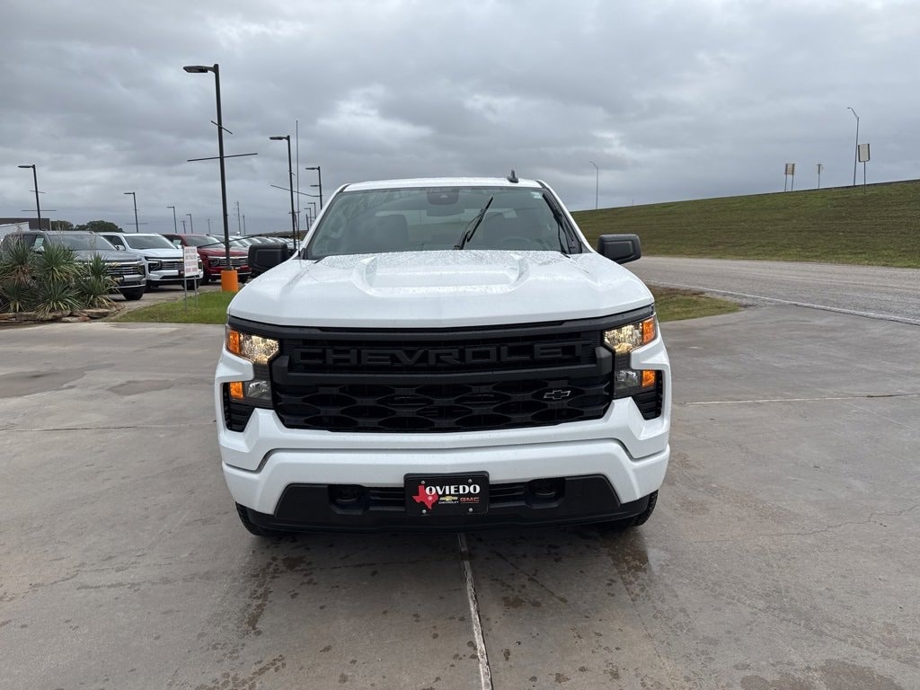 Summit White 2026 Chevrolet Silverado 1500 Custom 4WD 8-Speed Automatic 2.7L I4 Turbocharged DOHC 16V LEV3-SULEV30 310hp 8-Speed Automatic, 4WD, Jet Black Cloth.