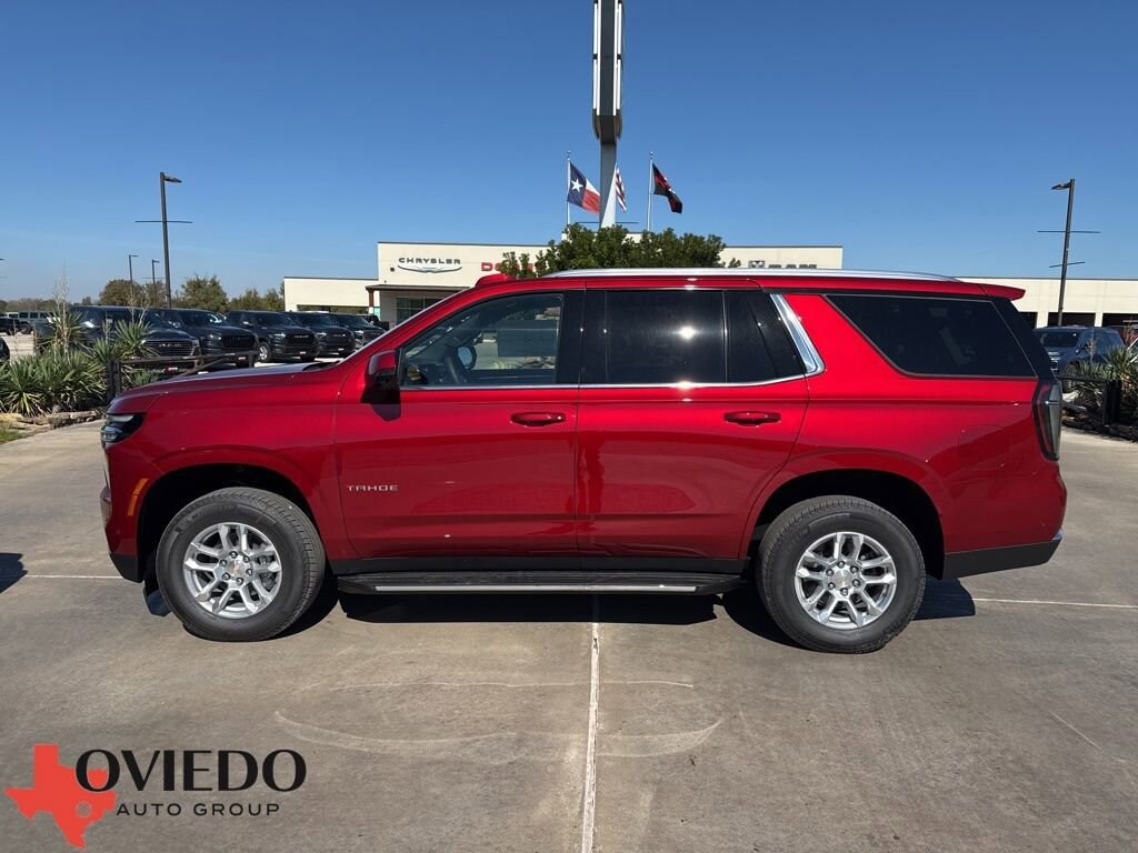 Radiant Red 2026 Chevrolet Tahoe LT RWD 10-Speed Automatic with Overdrive EcoTec3 5.3L V8 Jet Black Leather.